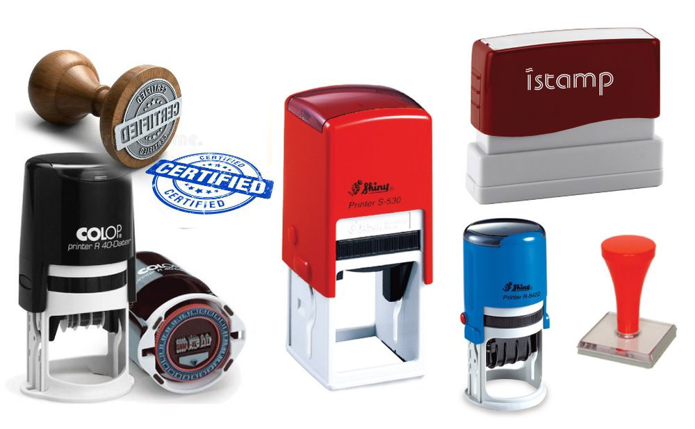 Stamp: A rubber stamp is a device made of rubber or similar material